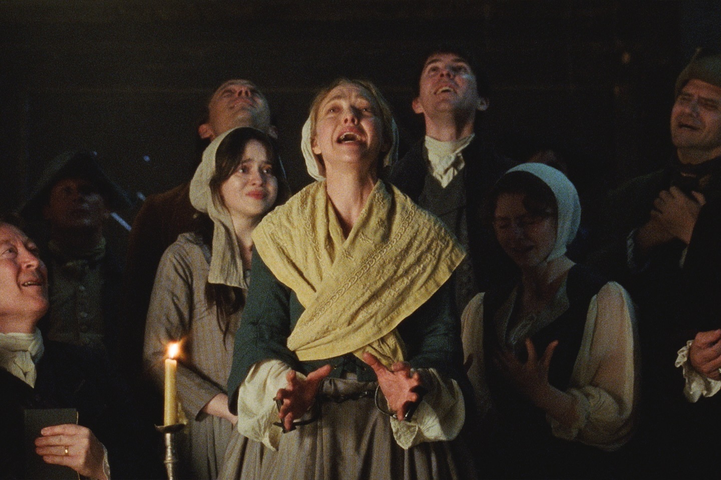 Formal bir ibadetleri olmayan Shaker tarikatının müritleri ve Amanda Seyfried bütün film boyunca dans ediyor, şarkı söylüyor ve çok çalışıyor… Dansları öyle salon dansı gibi de değil. Zaman zaman çığlık çığlığa yakarışlarla dolu spazmodik danslar filmin belkemiğini oluştuyor. Kameranın karşısında bir koreografiye göre mi hareket ettiler, her şey doğaçlama mıydı diye soruyoruz kendimize.. Kameraman sanki dansçılarla birlikte eğilip bükülüyor gibi geliyor insana. Bulunduğu çağın ve toplumun içinde acı çeken bir kadını canlandıran Seyfried gerçek bir insan öyküsüne dayanan bu filmde kadın deneyimlerinin en önemli parçalarını yaşatıyor. 48 yıl süren çileli bir yaşam öyküsü…1740 larda Manchester da yoksul bir aile demirci ustası zorba bir baba ,8 kardeş, inançlı bir çocukluğa sığınarak geçirilen yıllar, kardeş bağlılığı, ardından bir evlilik –ama filmin gidişatında acı bir ihanet–bundan ve hepsinden kötüsü dört birbirinden ızdıraplı doğum süreci, tutuklanmalar, hapis, açlık susuzlukla sınanma, sevdiklerini kaybetme, direnme, çalışma, çile ama bütün bunlara sonu gelmez bir direnç ve inancın gücüyle karşı koymanın hikayesi birbirini izleyen üç ayrı bölümde anlatılıyor. Hikaye boyunca anlatıcı olarak sadik dost, mürit yeni Zelandalı oyuncu Thomasin Mc Kenzie ile beraber ilerliyoruz.