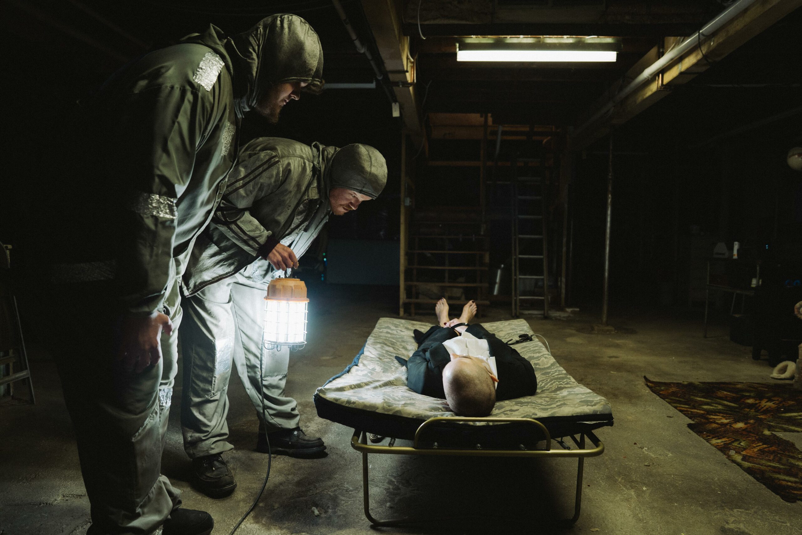 Gür saçları, donuk melek bakışları ve nörodiverjan bir hobbit gibi kesik kesik konuşmasıyla özünde hasarlı bie çocuk olan beceriksiz kuzeni Donny (Aidan Delbis) ile birlikte, etkileyici bir ustalıkla uygulamaya koydukları plan, arıcı kıyafetleri içinde Michelle’in evine gidip onu garaj yolunda yakalamaktır. Michelle dövüş sanatları hareketleriyle onları savuşturuyor ama, kovalayıp sakinleştirici dolu bir şırıngayla etkisiz hale getiriyorlar ve çiftlik evine götürüp bodrumda zincirliyorlar. Önce Michelle’in uzaylılarla iletişim aracı olan saçlarını kesiyorlar, sonra da, onu Andromedalı imparatorla pazarlığa zorlamak amacıyla işkenceye başlıyorlar…
