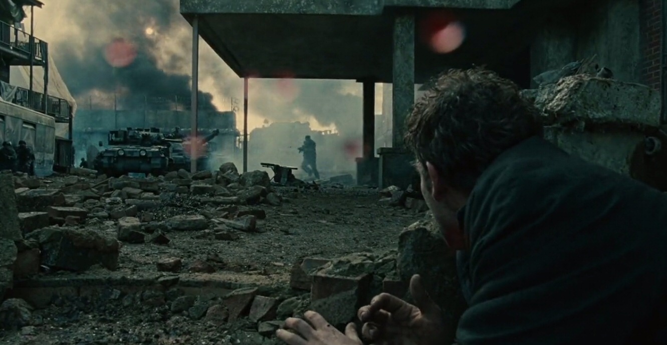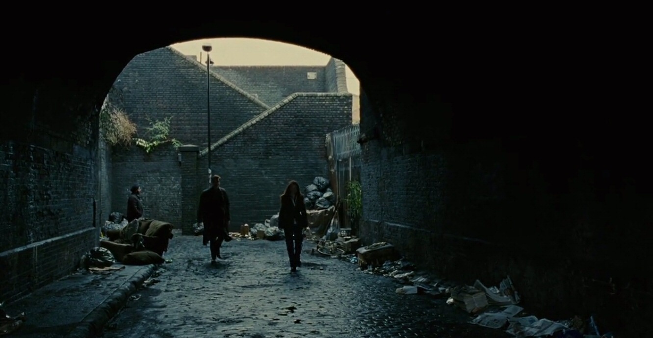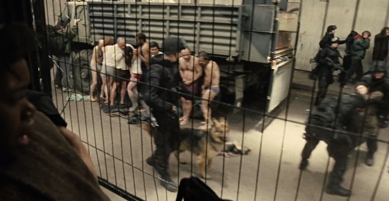 Yönetmen de bize hemen bu inşayı yapmamız için doneler sunar. Trende hareket edilmektedir; etrafı ve mahalleleri görürüz. İnsanların bir kısmı sokakta yaşamaktadır, bir kısmı kendi kişisel hakları için eylemdedir; açlık ve sefaletin egemenliği görüntüyü belirlemiştir. Yavaşça ilerlemeye devam ederiz; peyzaj harikasıyla süslenmiş bahçeler, geniş ve ferah yollar, yolda rahat yürüyen insanları görürüz. İlk bakışta anlarız ki adaletsiz bir toplum yapısı inşa edilmiştir. Bu sahne, mülkiyetin bir güvence ve kimlik kaynağı olduğunu vurgular. Ayrıca sokaklarda yoksulluk ve çürümüşlük belirgin hale gelirken, zenginlerin mülkiyetleriyle ayrıcalıklı bir yaşam sürdüğü gösterilir. Görüntüler akmaya devam ederken arkadan, radyodan gelmekte olan bir ses duyulmaktadır; “Kaçak göçmenlere yardım etmek suçtur!”… İlk 10-15 dakikası bize dünyayı inşa ettirmekle geçer. Tercih edilen soğuk renk paletleri ile karamsarlığa daha da itiliriz.