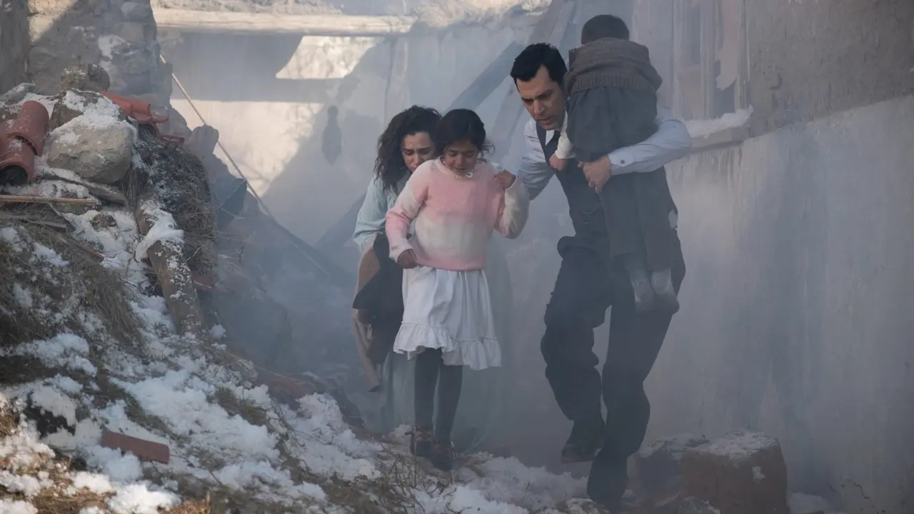 17 Nisan itibariyle tabii platformunda gösterime giren “Kara Kış”, bizi önce zorlu bir cezaevi ortamına sokuyor. Filmin mat renk seçimi ile birlikte mahkumların serzenişlerine kulak veriyoruz. “Son Akşam Yemeği”nde de belirgin bir kötü karakteri yansıtan, bu yapımda da yine ahlaki zaafları bulunan, Mustafa Kırantepe’nin hayat verdiği cezaevi müdür vekili Duran, mahkumların hayatını daha da zorlaştırmakladır. Ona bu cesareti veren ise ilin en büyük mülki amiri vali (Fırat Doğruluoğlu) ve yardımcısı Şevket (Serdar Orçin)’dir. Görevini idealistçe yerine getiren Savcı İzzet Akçal (Murat Yıldırım) bu duruma itiraz ederken, tüm dengeleri kışın tam ortasına denk gelen gece yaşanan deprem felaketi değiştirir. Eşi Zemzem (Hande Doğandemir) çocuk beklerken gelen bu afet sadece Savcı’nın evini yıkmaz, tüm kent bu depremin acı bilançosu ile baş başa kalır. İşte böyle acı bir ortamda iletişim kanallarının bozukluğuna, idarenin basiretsizliği de eklenince Savcı’nın aklına mahkumları enkaz altında kalan çocuk, yaşlı tüm insanları kurtarmak için dışarıya geçici olarak salmak gelir. Ancak bu durum kolay gerçekleşmez.