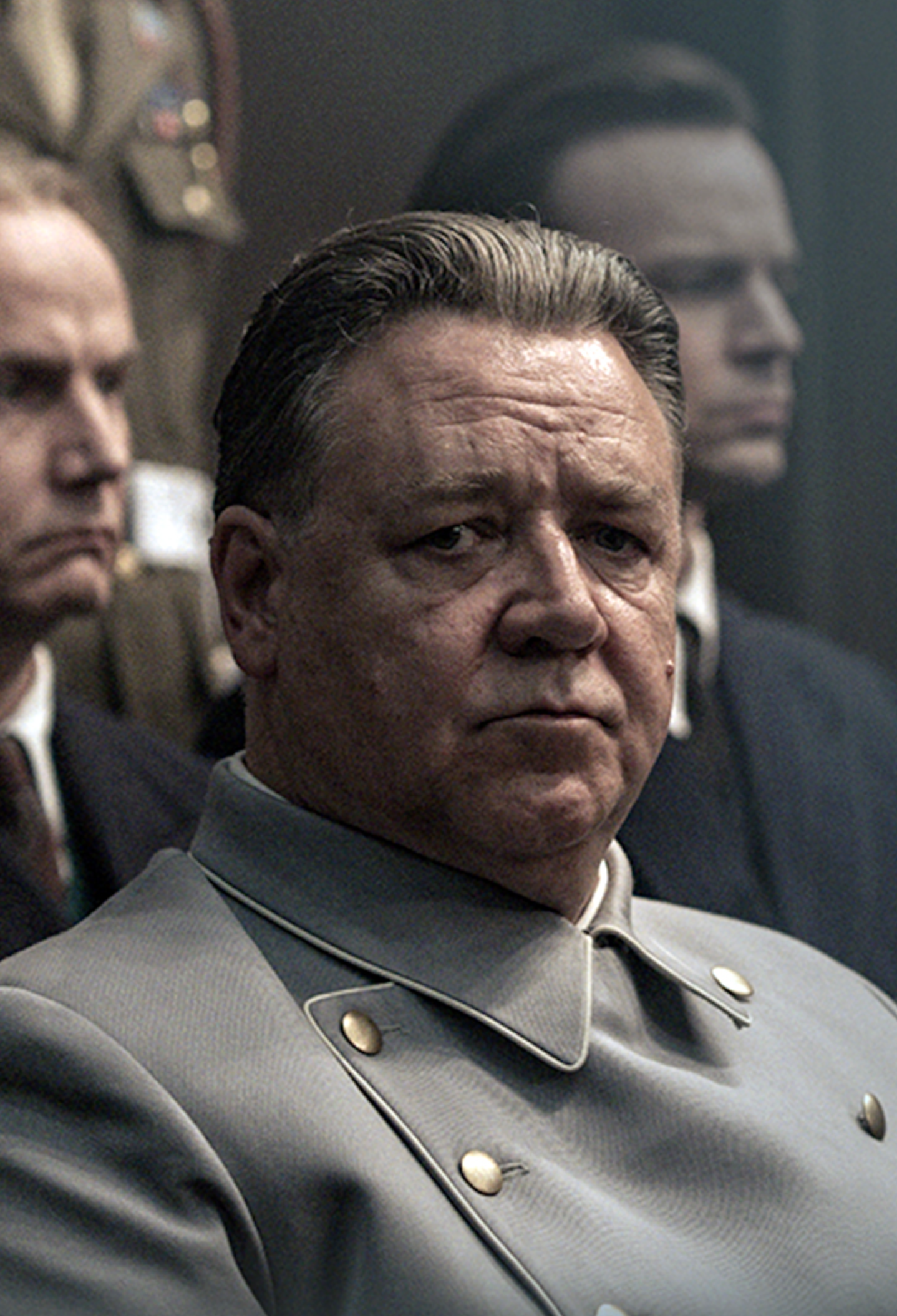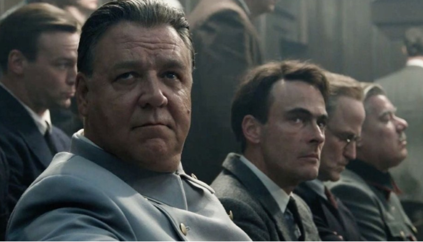 2. filminin oyuncu kadrosuna gelince… Rami Malek başarılı oyuncu kadrosunun tek aksıyanı. Yüzün üstünde kilosuyla, müthiş makyajıya Göring rolündeki Rusell Crowe ustalıklı performansıyla, İngilizceyi Alman aksanıyla konuşmasıyla öne çıkıyor. Özgüven patlaması yaşayan, işlediği insanlık suçunu inkar eden, savaşı kaybeden bir komutan olmasına rağmen gururundan feragat etmeyen, “en iyi savunma hücumdur” düsturunu duruşma salonunda sürdüren, Holokost’u Amerikanın attığı Atom bombasıyla karşılaştıran, pişmanlık duymayan Göring rolünde Rusell Crowe, insani görünümüyle “insan canavar” arasındaki gerilimi aktarmada başarılı.